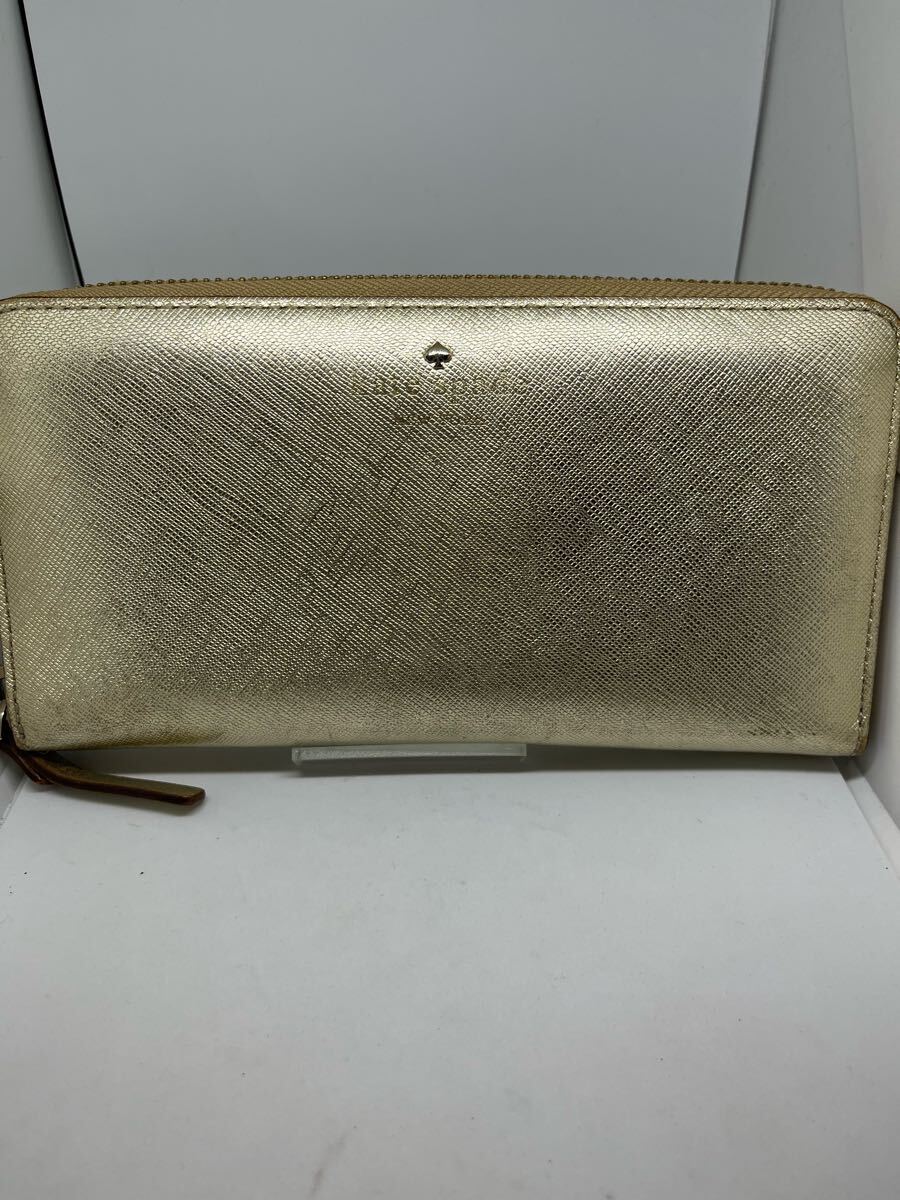 - kate spade ラウンドファスナー長財布 レザー ゴールド ロングウォレット レディース ブランド ケイトスペード ラウンドジップ