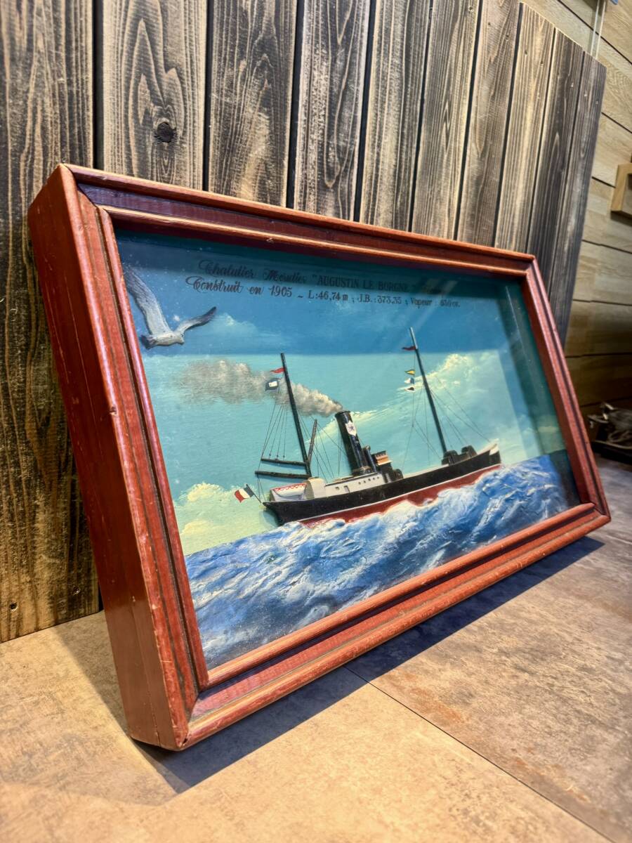 - ☆20世紀初頭の壁掛けジオラマ 海 かもめ 船 アンティーク オブジェ レトロ アンティーク☆