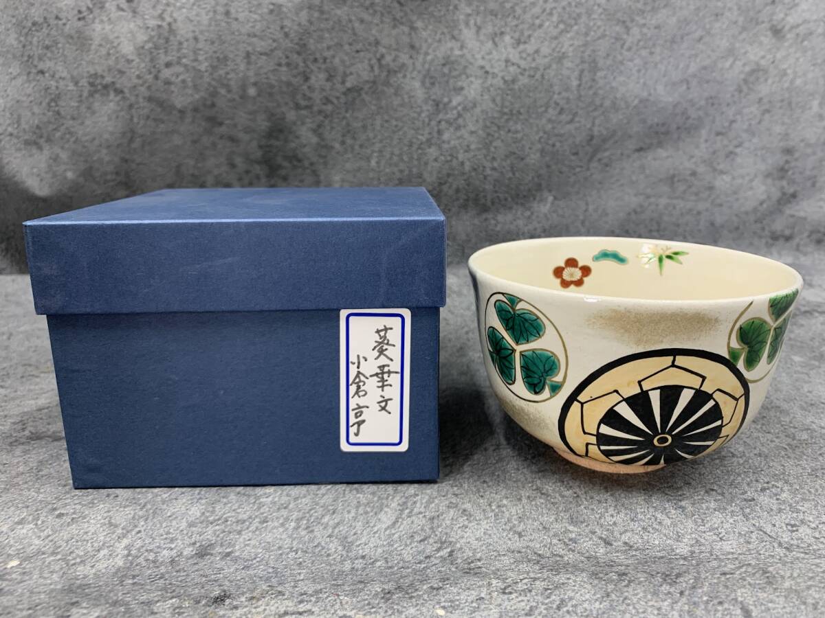 > 【 小倉享 葵華文 茶碗 御茶碗 】焼物 京焼 陶印 茶道具 抹茶碗 骨董 古美術