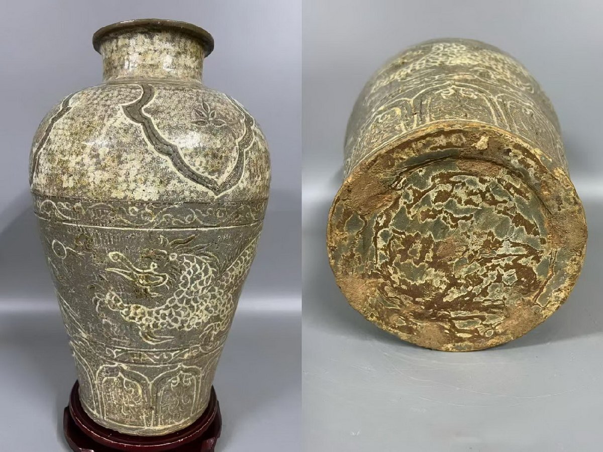 > ■観心・時代旧蔵■K4056コレクター放出 朝鮮古美術 高麗磁 李朝時代 古高麗 高麗粉青磁魚紋梅瓶
