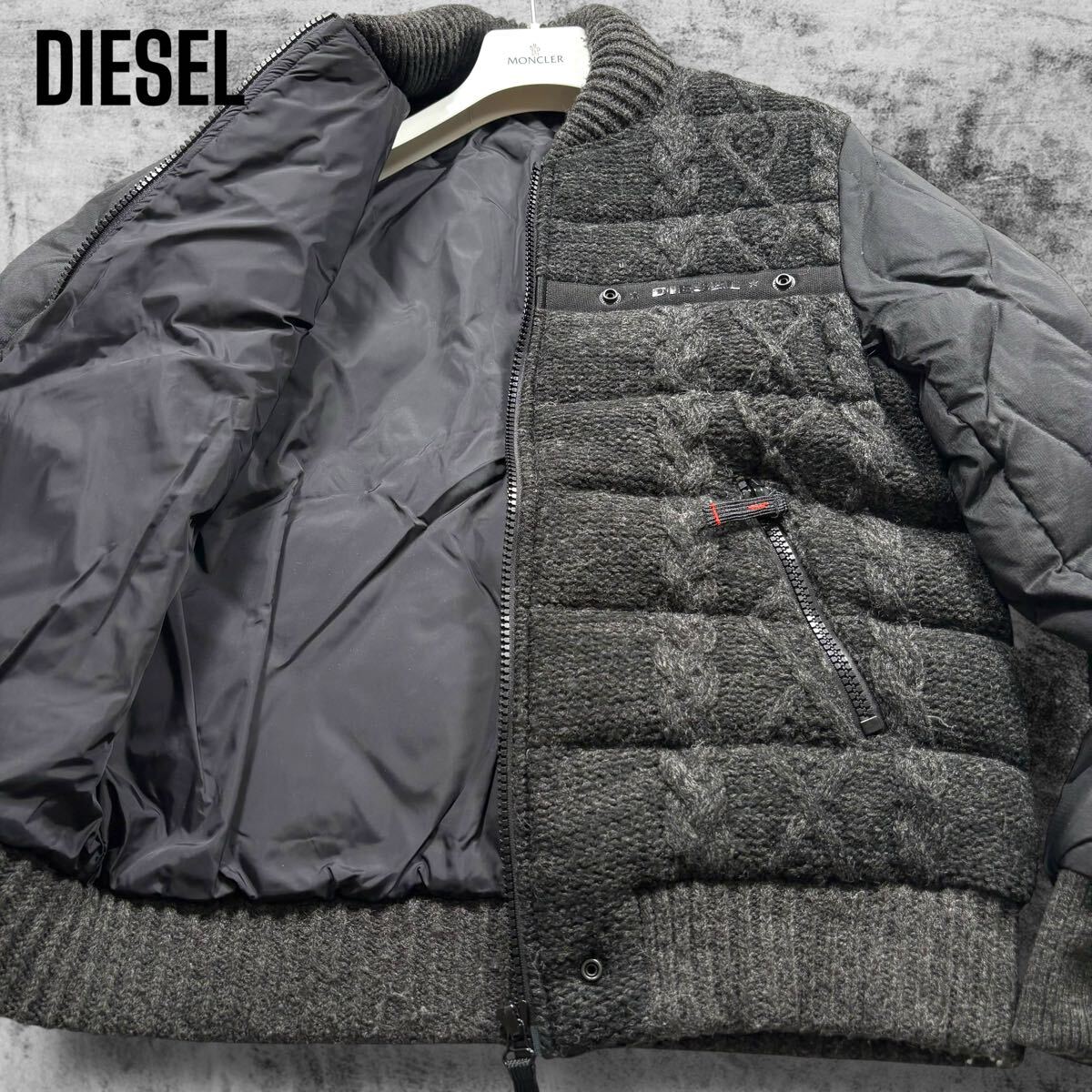 > 極美品/L相当◎ ディーゼル キルティング ウール切替 クレイジーパターン ダウンジャケット ブルゾン アウター ブラック 黒 DIESEL メンズ