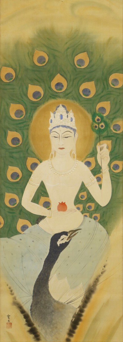 - 【真作】掛軸「荒井寛方 孔雀観音」水野年方門下四天王 仏画の寛方 絵画