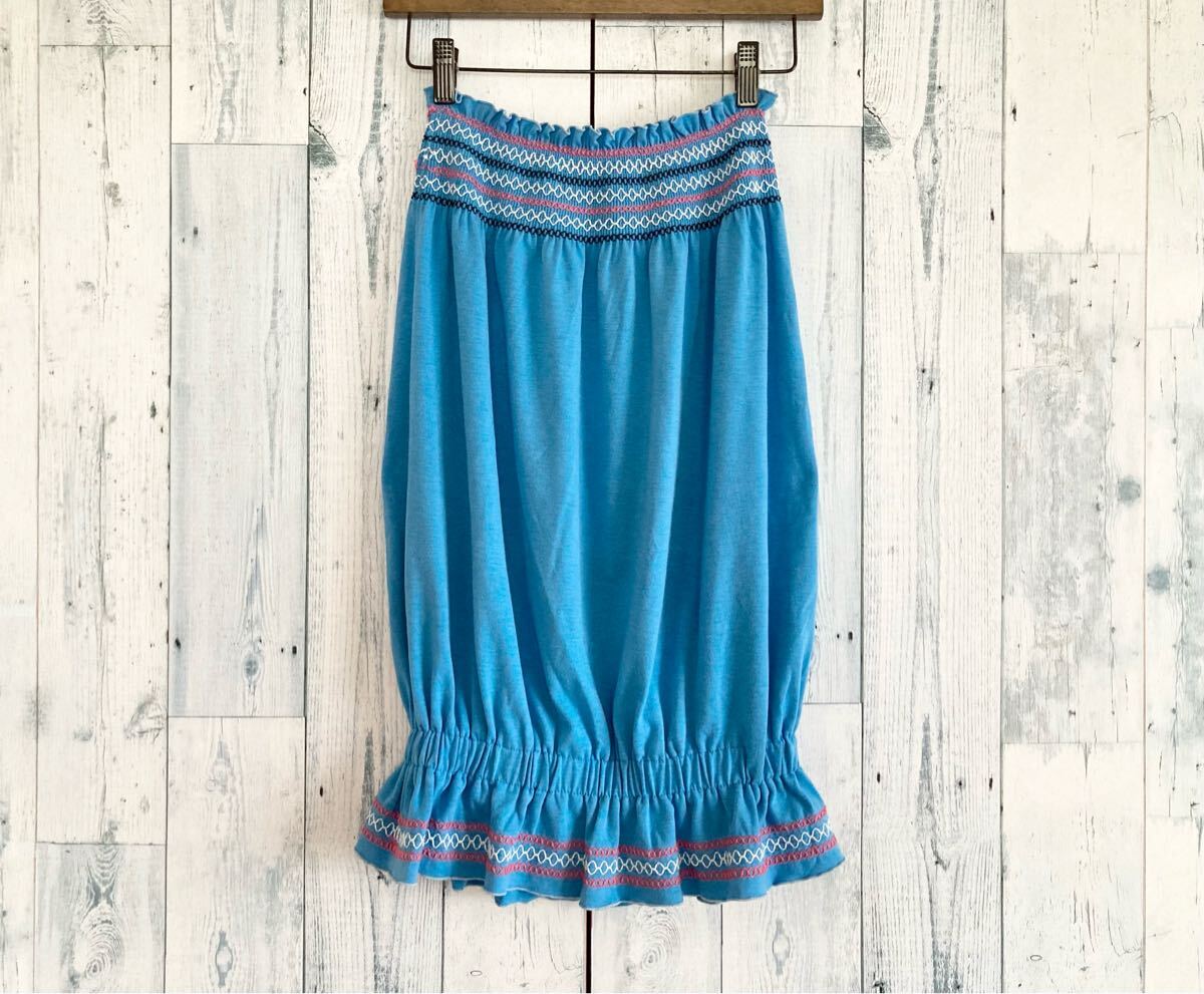 - ギャザーチューブトップ 刺繍 ボヘミアン ブルー レディース M