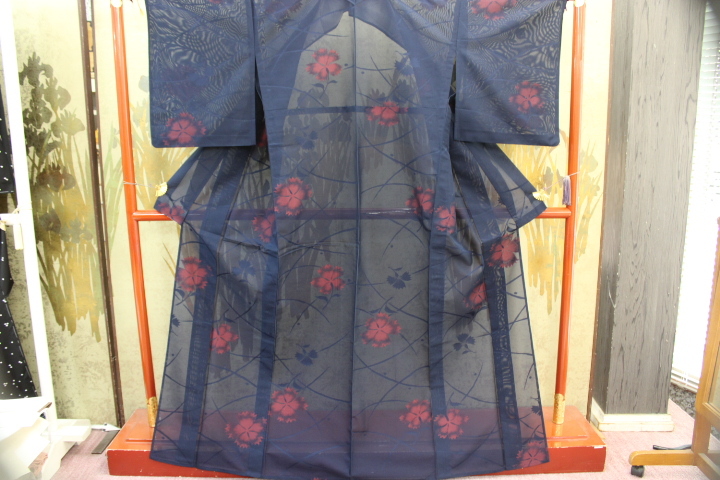 > きもの今昔8525 夏のきもの 十日町紗のきもの 広衿セブセ付き単衣仕立 使用痕跡なく未使用に近い 身丈163cm