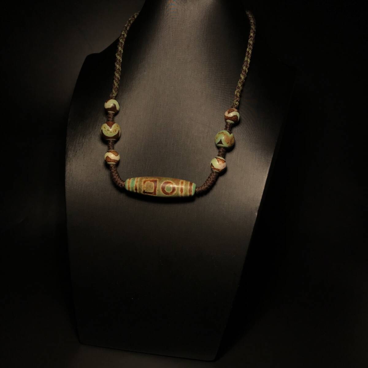 - 清 古瑪瑙彫 包漿玉化 青瑪瑙 双天地天珠 高油 項鏈 箱付 置物擺件 時代物 古董品 骨董 旧家藏出 唐物 中国古玩 古美術品