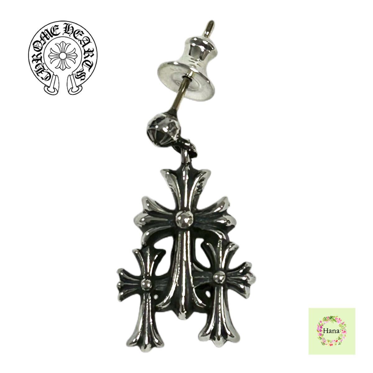 > 新品 CHROME HEARTS クロムハーツ 925 ERNG / PC 3 CH CRS SLV ピアス トリプル CHクロス トリプルクロス シルバー 2.60g 保証書無修正
