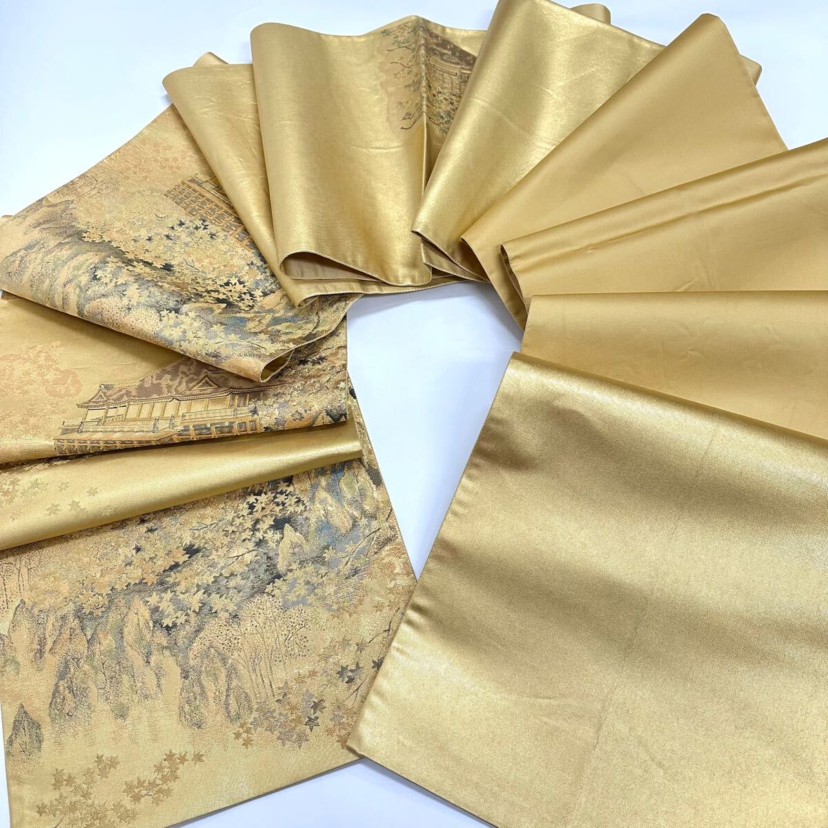- 【七福】c555 逸品 高級品 正絹 袋帯 六通 清水寺 清水のほとり 本金 五倍箔 引箔 金糸 ゴールド 豪華