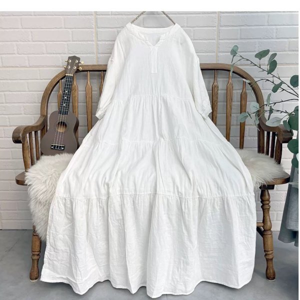 > yy ティアードワンピース ゆったりダブルガーゼ ふんわり アンティーク風 ロマンファッション 純色 綿100% ホワイト