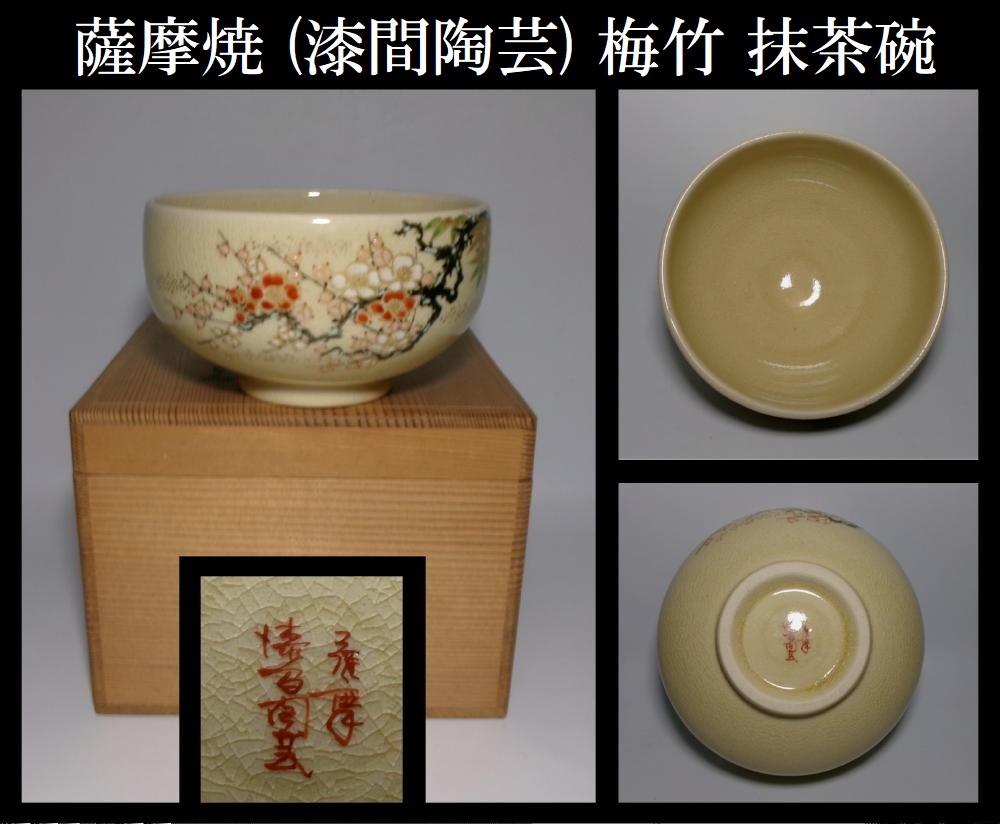 - 【真作保証】薩摩焼 (漆間陶芸) 梅竹 抹茶碗