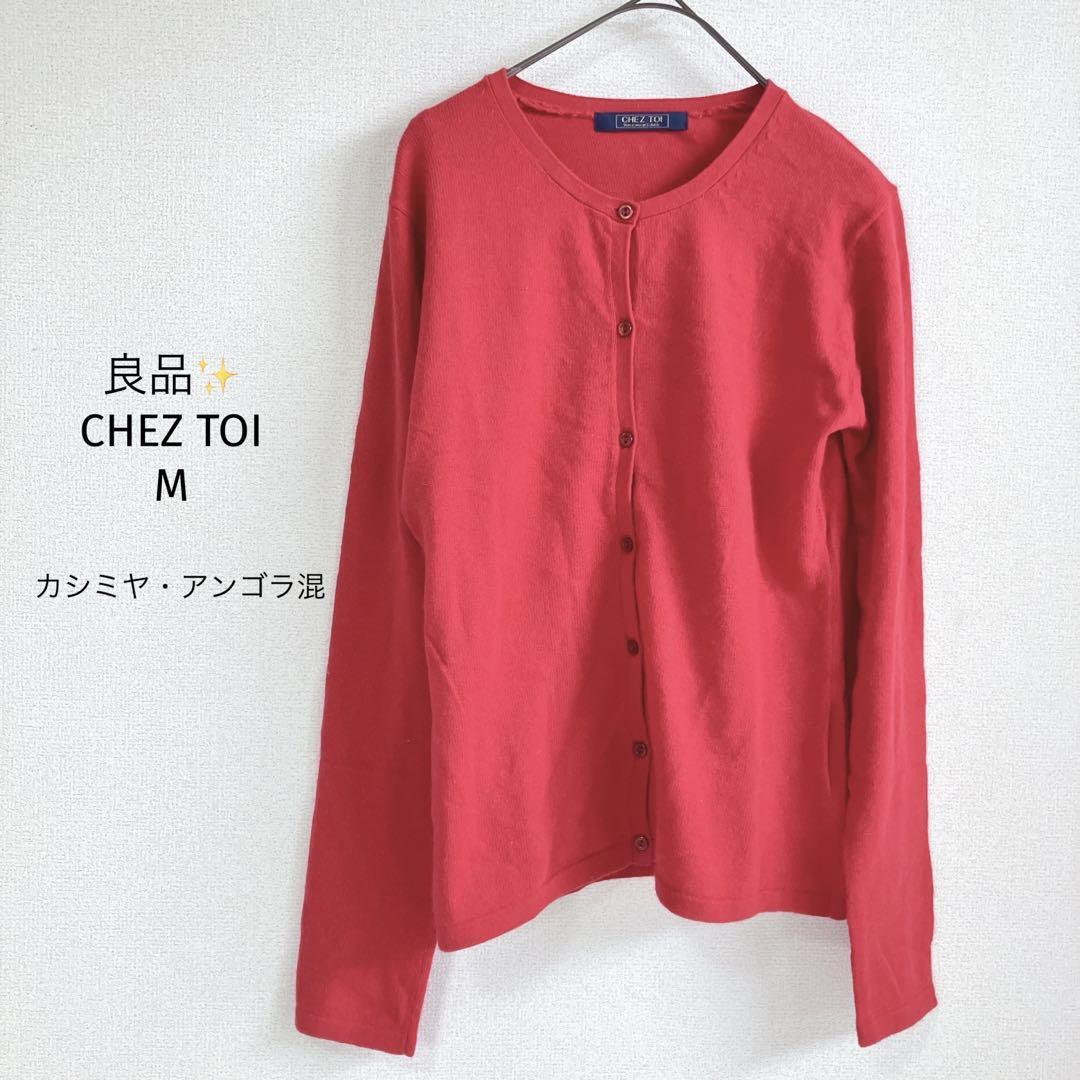 - シェトワ CHEZ TOΙ カシミヤ アンゴラ混 カーディガン【M】長袖 赤
