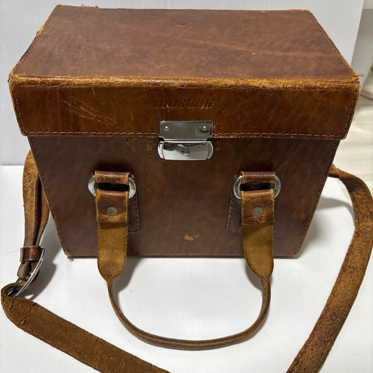 - masumi カメラバッグ ケース ビンテージ アンティーク レザー ブラウン 昭和レトロ