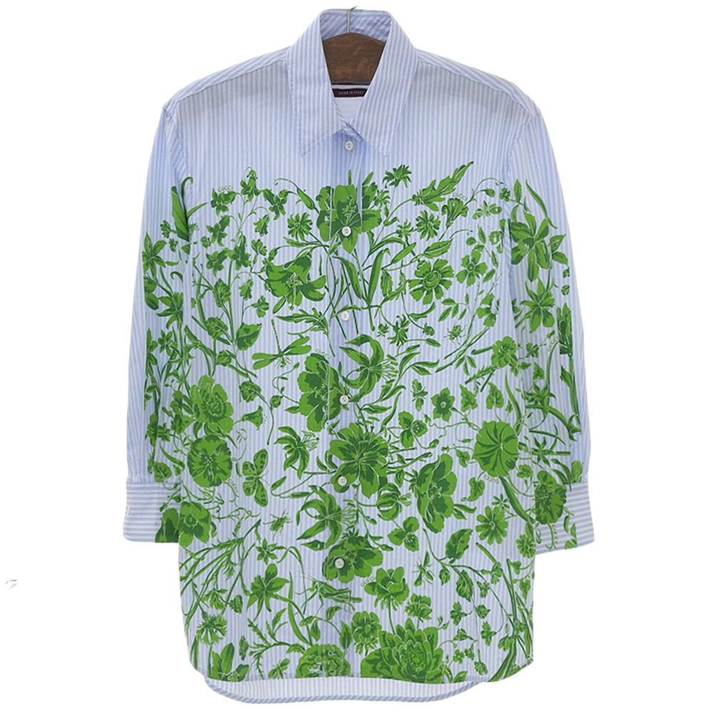 > 美品 24AW GUCCI グッチ サバトデサルノ期 フラワープリント ロングスリーブ コットンシャツ 36 ライトブルー