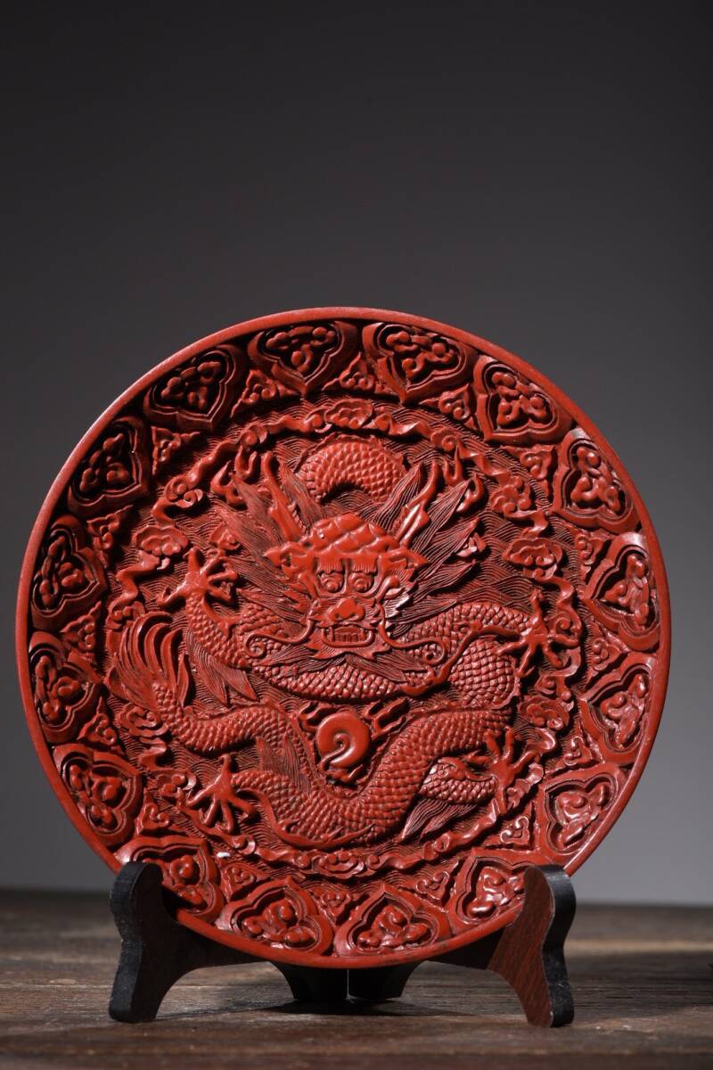 - 蔵友旧蔵出 剔紅漆器彫 神龍紋 賞盤 貴重物品 置物 賞物 中国時代美術品