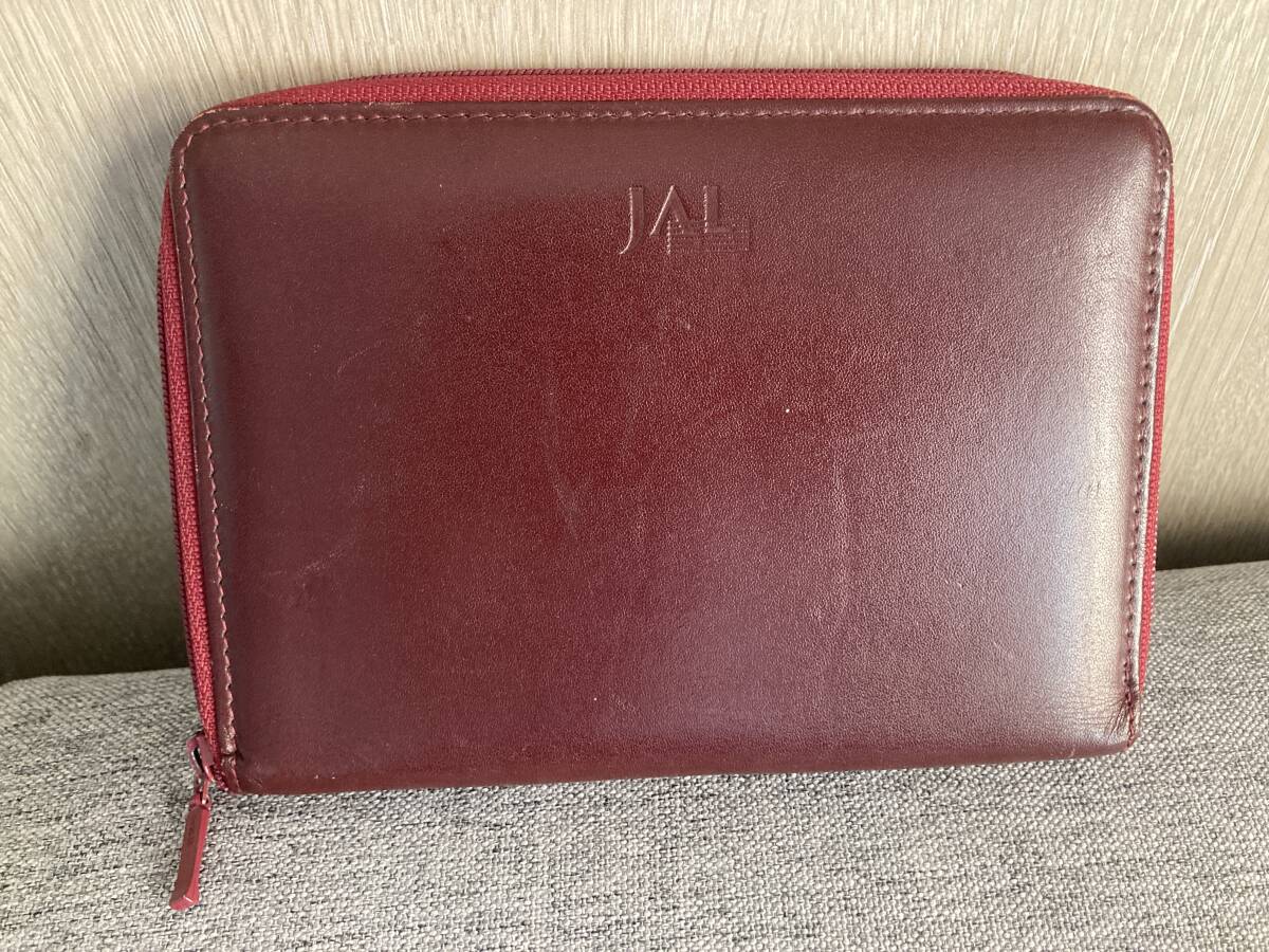 - ★JAL 日本航空 パスポートケース ファスナータイプ エンジ色 カード 小物入れ 海外 旅行 出張