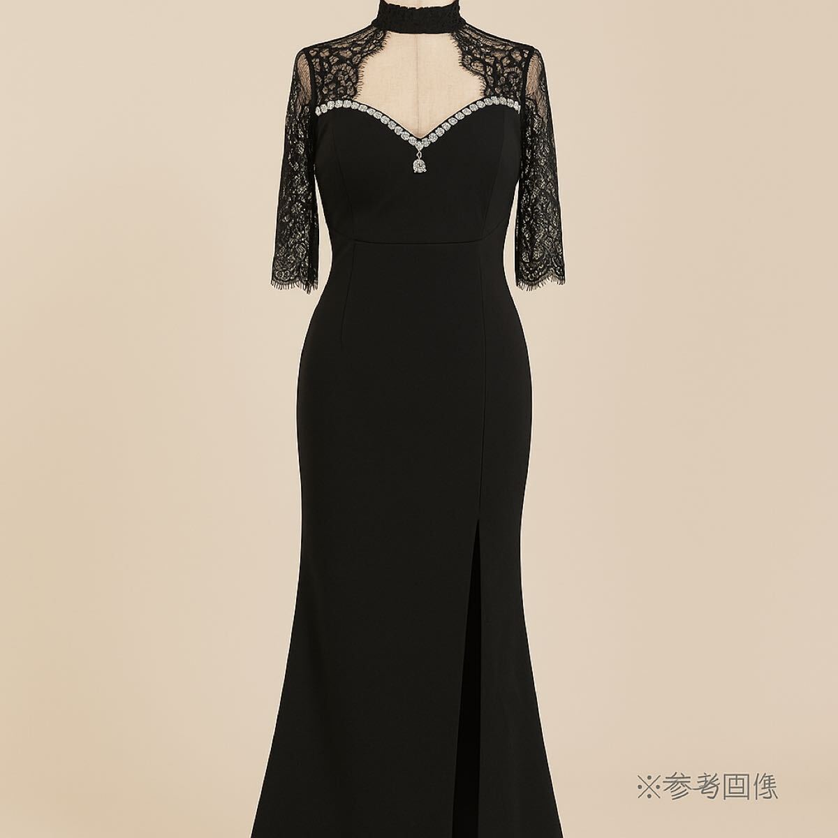 - ☆ Tika 七分袖レース×ビジュー ロングドレス 黒 M相当 スリット有