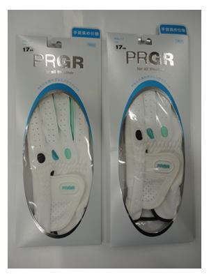 > ■手首長め仕様 !! PRGR 合皮 プロギア レディース ゴルフ グローブ x 2枚【17cm/ホワイト&グリーン】PGL-17