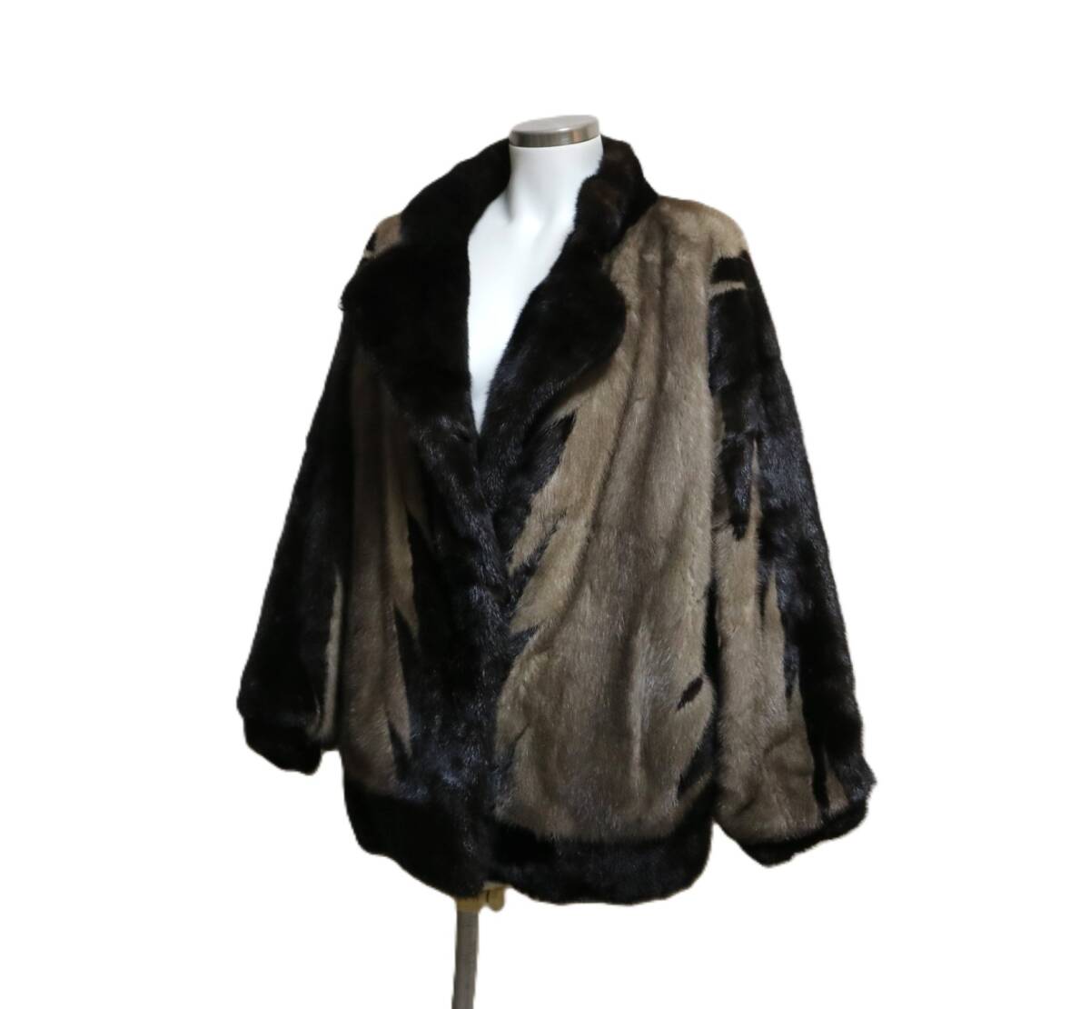 > 【即決】極美品 MINK ミンク リアルファー◆希少 デザイン カナダ お洒落 光沢 艶 ハーフ コート ダークブラウン×グレージュ系 M~L