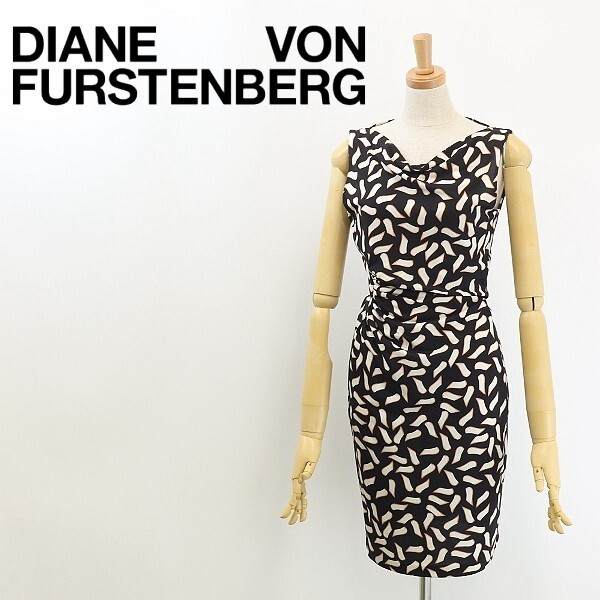 - 美品◆DIANE von FURSTENBERG ダイアンフォン ファステンバーグ GLASMARY シルクジャージ 総柄 ドレープ ノースリーブ ワンピース 0