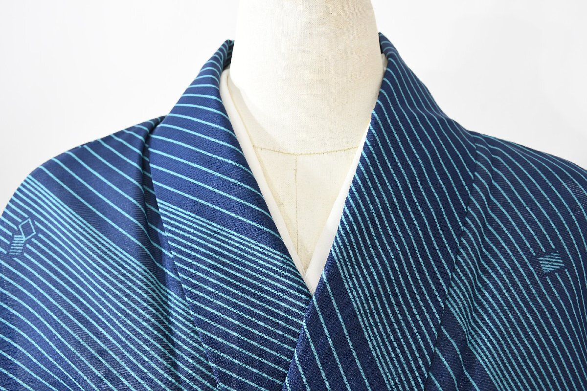 - 小紋 洗える着物 着物 絽 夏着物 薄物 四角 地紙 斜線 身丈159cm 裄丈65.5cm ★ kb-6837 桜庭呉服店