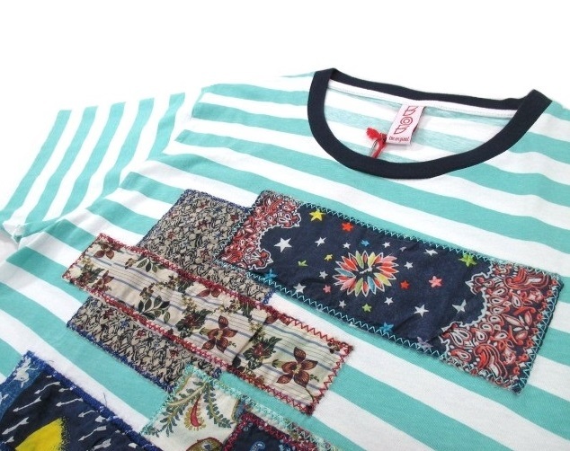 > 新品★BOB 半袖 イタリア製 パッチワークボーダーTシャツ Lサイズ★定価17600円 白/サックス ボブ メンズ