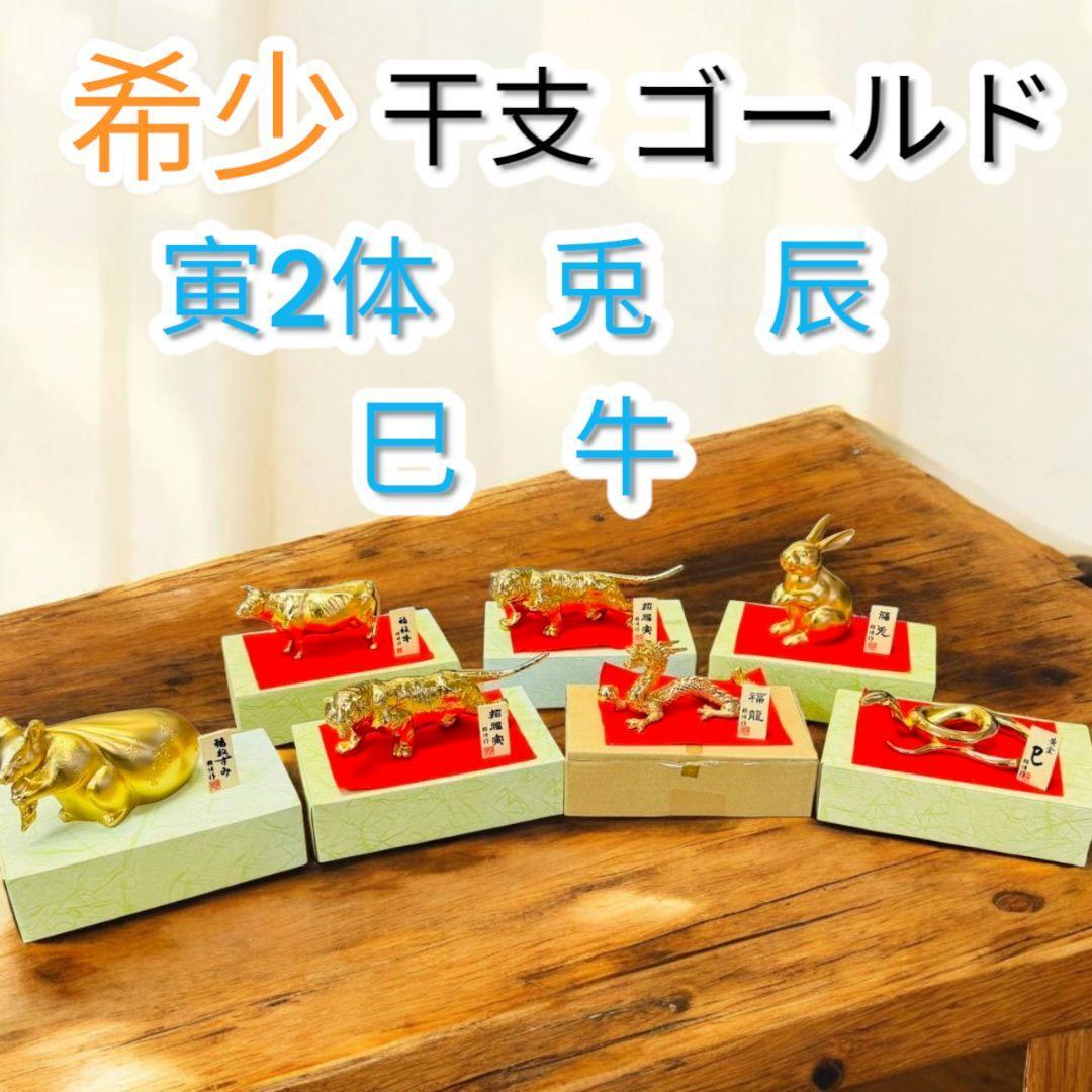 - 希少 干支置物 箱付き ゴールド 金 寅2体 兎 辰 巳 牛 十二支