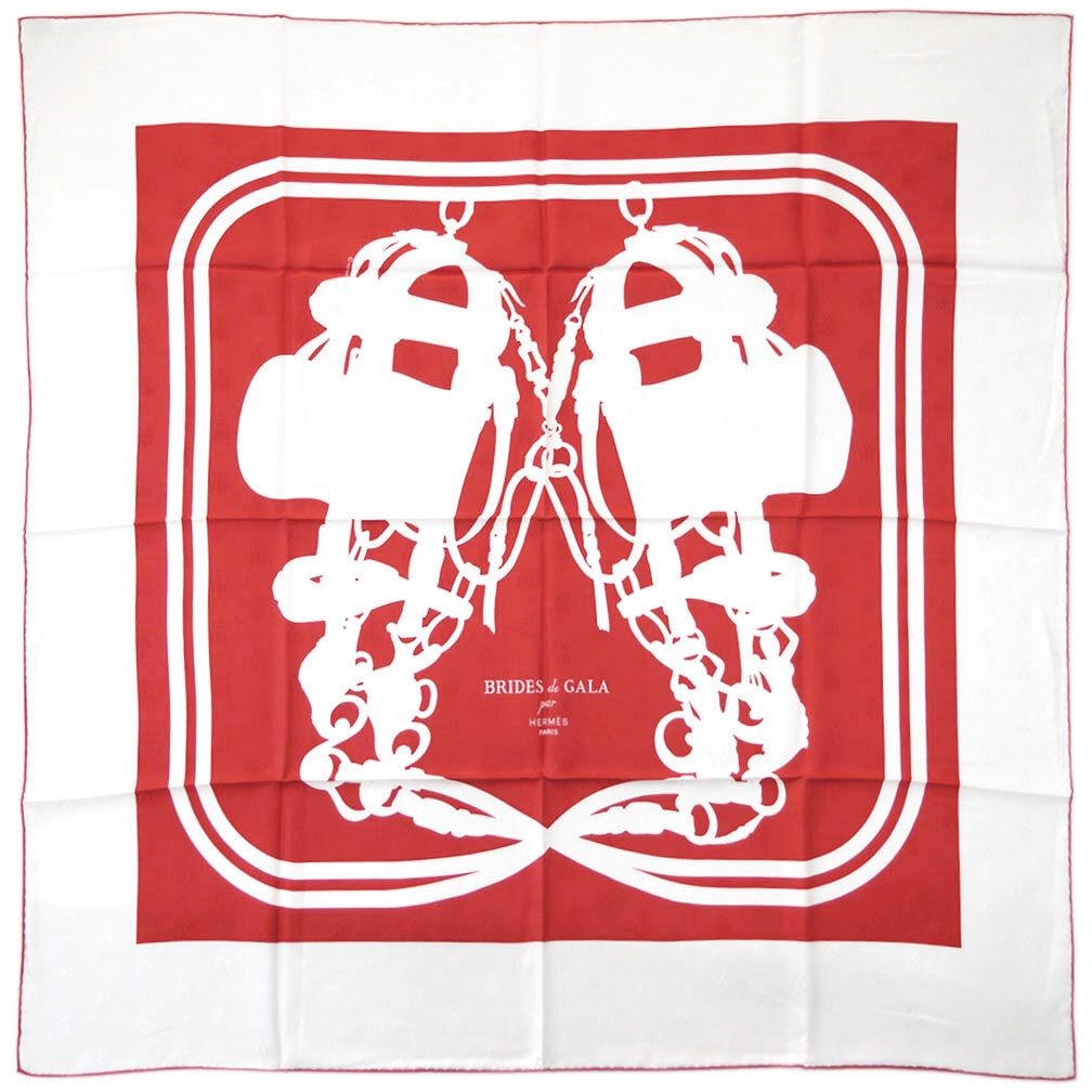 > 未使用 エルメス スカーフ H173129S10 ソルド カレ・タトゥアージュ シルク カレ90 ABEILLES BRIDES DE GALA TATOO レッド ホワイト 赤 白