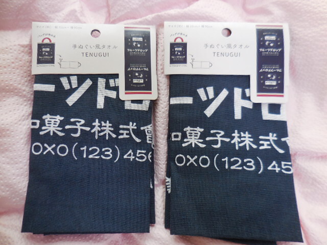 - 人気完売品☆未使用美品 手ぬぐい風タオル フルーツドロップ 2ケ ネイビー レトロ 綿100% セリア @10月限定送料無料