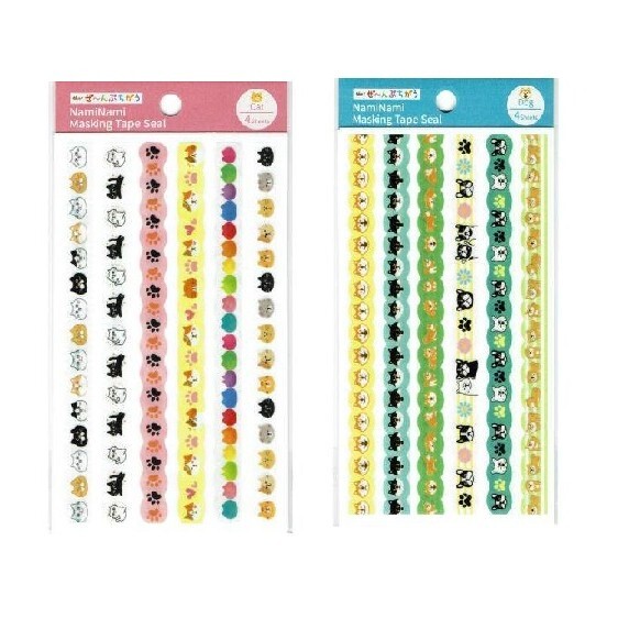 - @【即決】◆ナミナミマスキングテープシール◆ねこ柄 いぬ柄 どちらか1つ 柄が全部違う 4シート入 ステッカー 猫 犬//TM01133 TM01134