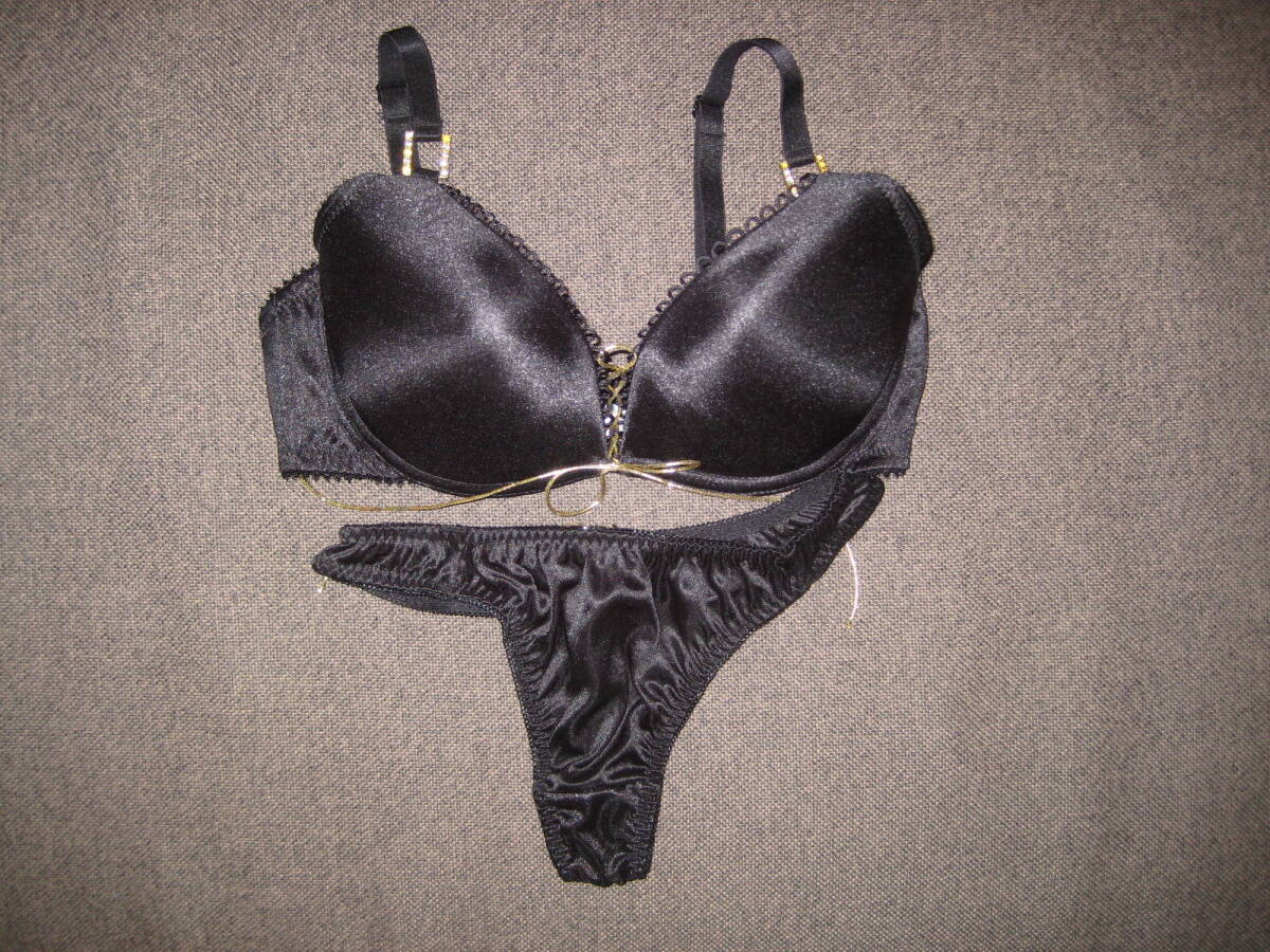 - D65 プレジャージーン シンプル 超光沢 ツルツル サテン ブラ&Tショーツ セット ブラック/Mサイズ