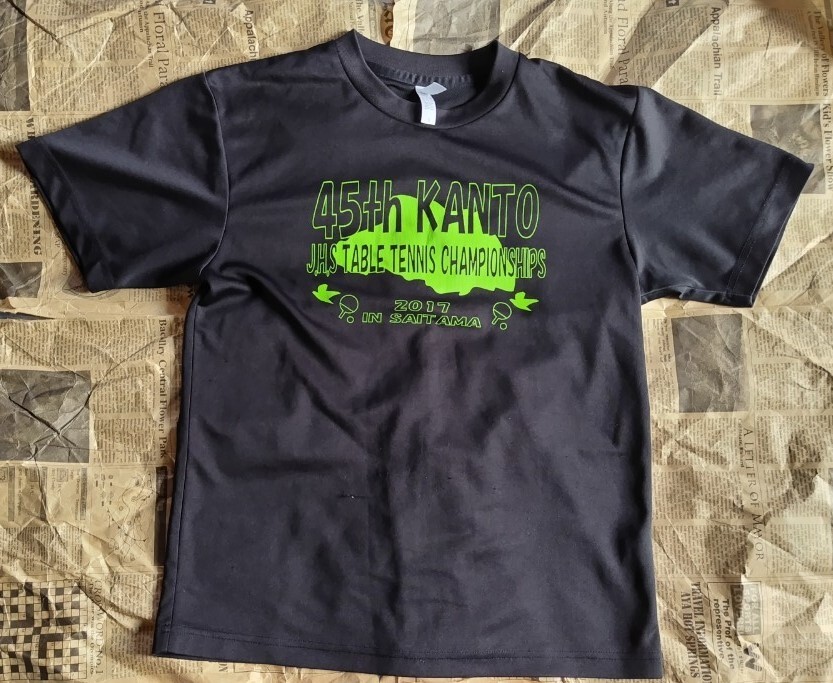 - ★送料安い★【ニッタク S 卓球 Tシャツ 黄緑 45th 2017 中学校 関東大会 中古 練習着 ポリエステル100%】
