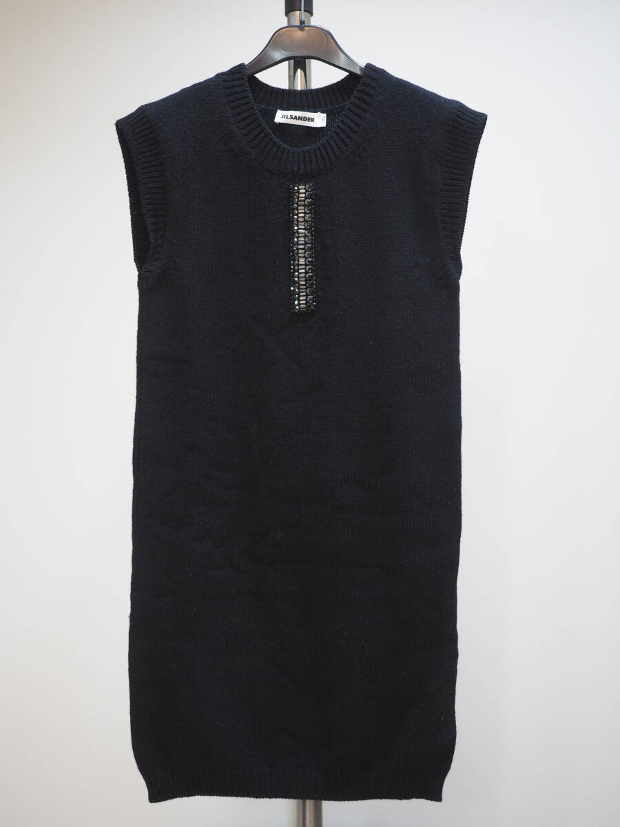 - JIL SANDER ジルサンダー 13AWビジュー付きノースリーブニットワンピース36黒 Italy製