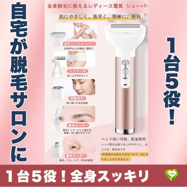 - 【1台5役!全身スッキリ】シェーバー レディーズ 女性 1台5役 USB充電式 全身 顔 脇 腕 足 ムダ毛 処理 電動 人気 おすすめ