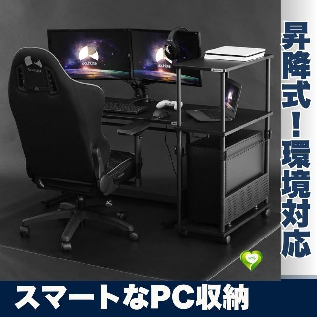 - 【スマートなPC収納】パソコンラック PCワゴン デスクトップPC 昇降式 キャスター 収納 組立簡単 省スペース 置き台 人気 おすすめ