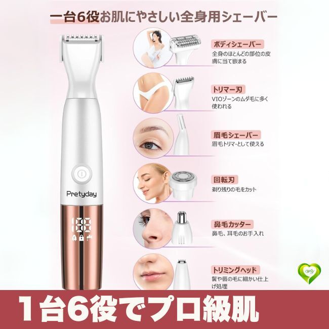- 【1台6役でプロ級肌】シェーバー レディーズ 女性 電気シェーバー 全身 LED TypeC 充電 防水 乾湿両用 水洗い可 人気 おすすめ