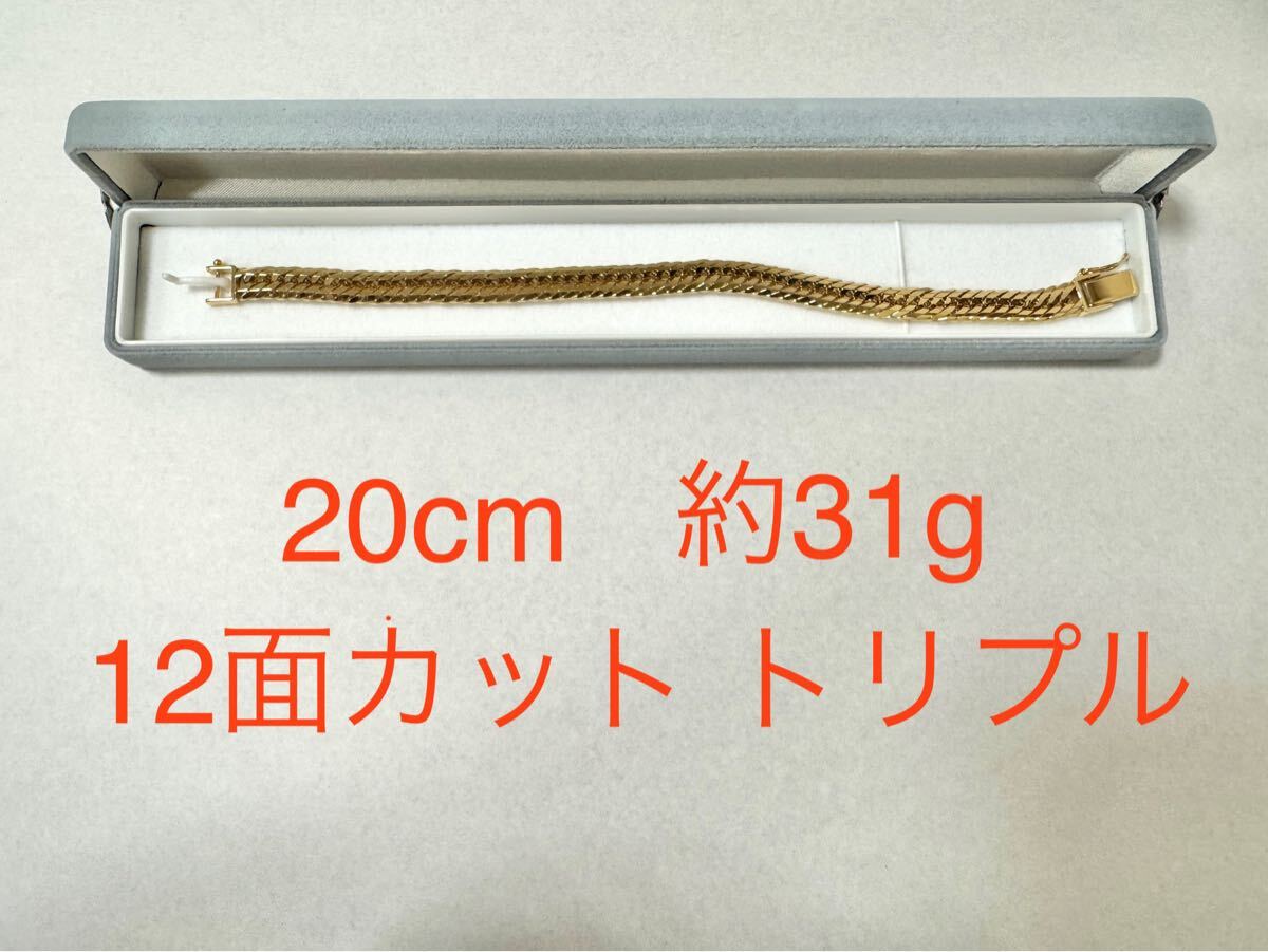 > 【質屋 尾張屋商店 東京】 ☆仕上済☆ K18YG 12面カットトリプル喜平 ブレスレット メンズレディース 20cm