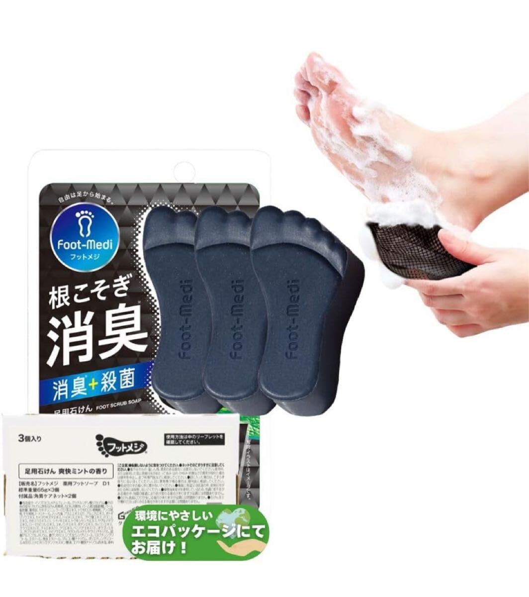 - フットソープ 3個入り (爽快ミント 3個入)/ エコ包装 足石けん 薬用炭 24種類のハーブ スクラブ