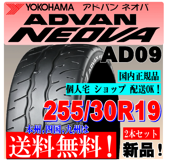 > 255/30R19 91W XL 送料無料 アドバン ネオバ AD09 ヨコハマタイヤ 2本価格 正規品 ADVAN NEOVA 個人宅 ショップ配送OK