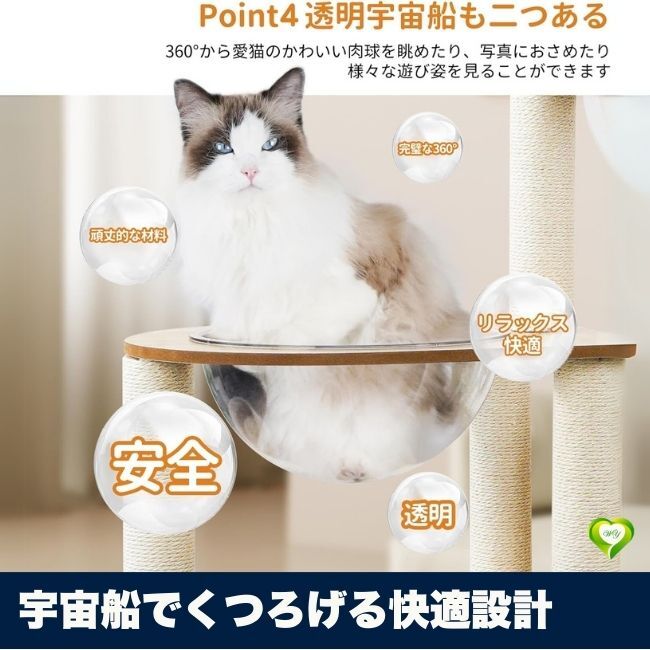 - 【宇宙船でくつろげる快適設計】キャットタワー 6階建て 宇宙船 多頭飼い 運動不足解消 サイザル麻ロープ巻き 安定感 人気 おすすめ