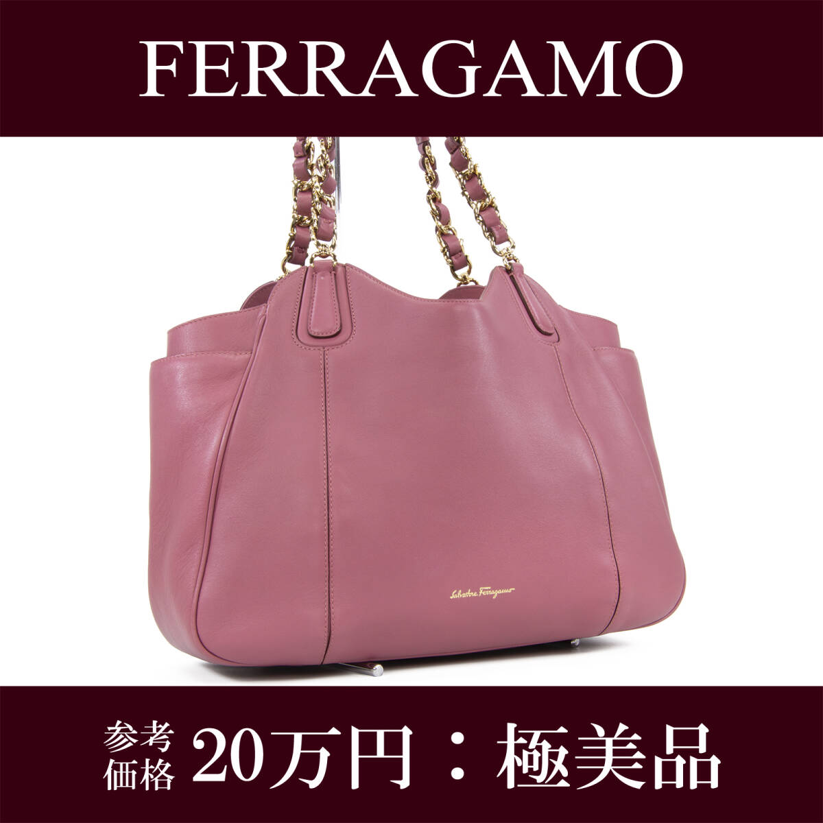 - 本物 送料無料 フェラガモ セミショルダーバッグ レディース ガンチーニ ピンク 人気 肩掛け ロゴ マーク ゴールドチェーン 鞄 バック I238