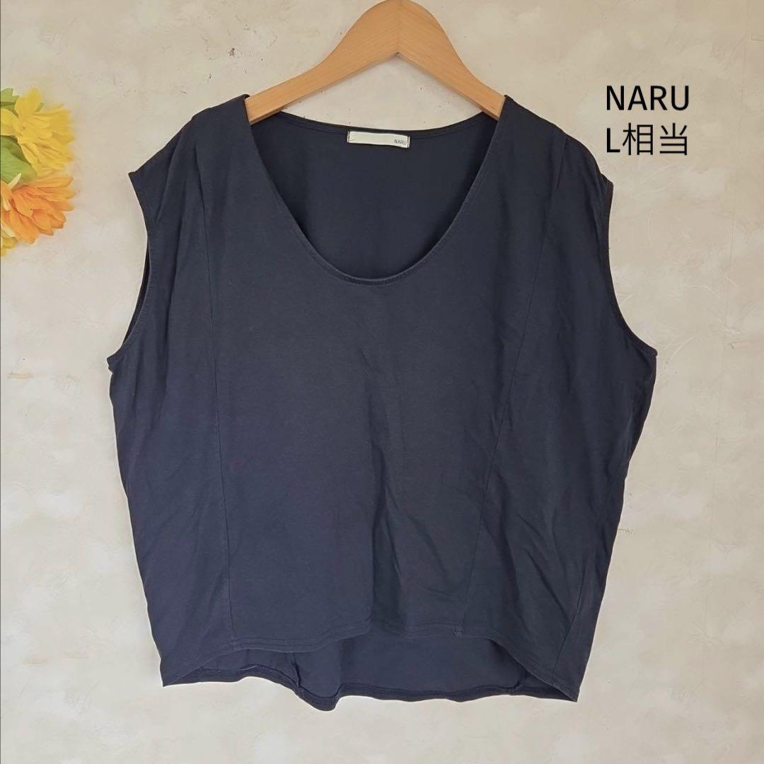 - ナル NARU ブラウス【L相当】ノースリーブ 紺 ネイビー 無地 綿100%