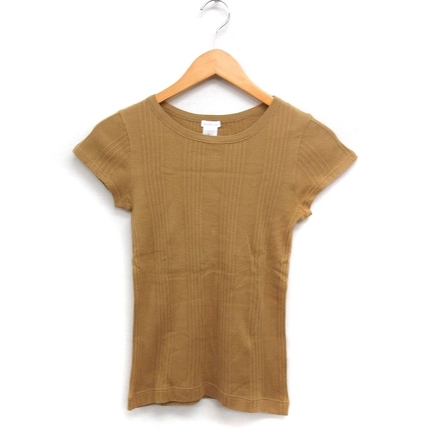 - ギャルリーヴィー GALERIE VIE トゥモローランド コットン リブ ニット カットソー 半袖 丸首 無地 S キャメル 茶 /FT39 レディース