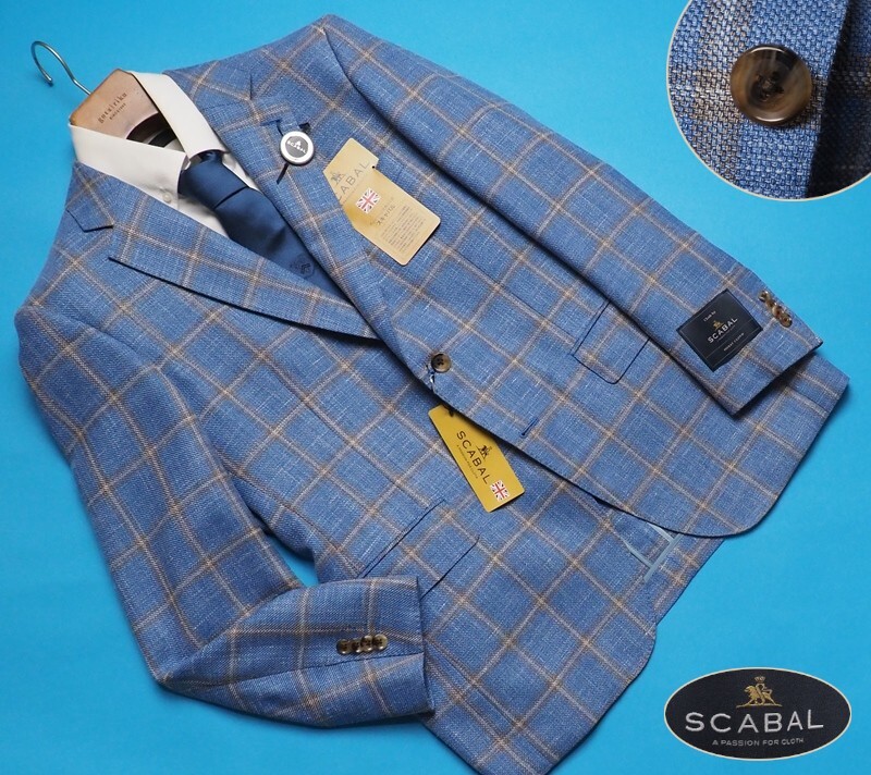 - 新品14.3万円 大手百貨店扱い 日本製『Scabal スキャバル 英国製生地』ウール100% バスケット織 格子柄 ジャケットBB7青(F) 3750490