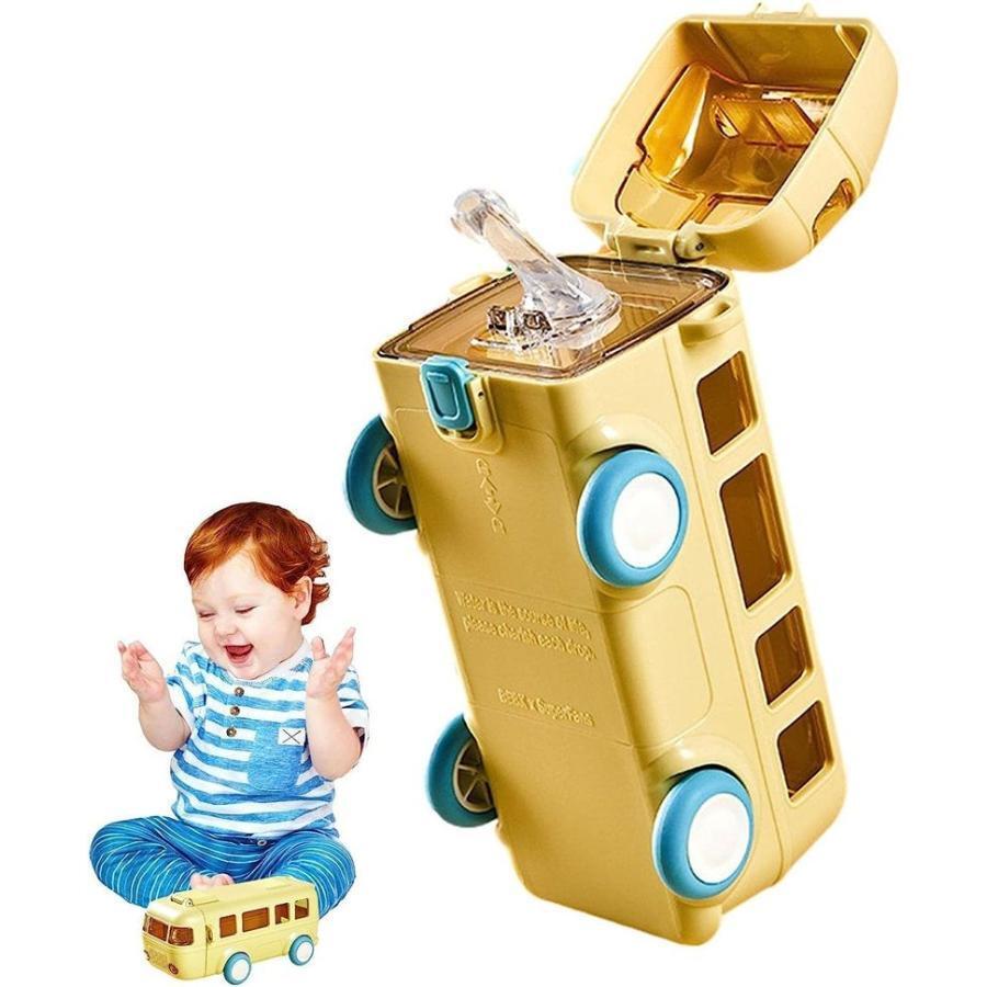 - 子供用ウォーターボトル かわいい おもちゃ スクールバス 幼児用 ウォーターボトル 蓋付き ポータブルカート 360度漏れ防止 男の子 女の子