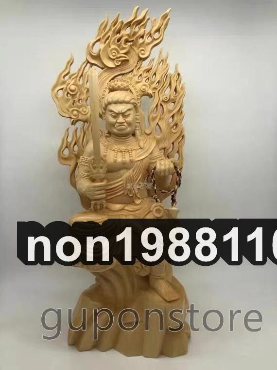 - 最新作 総檜材 木彫仏像 仏教美術 精密細工 仏師で仕上げ品 不動明王座像 高さ34cm
