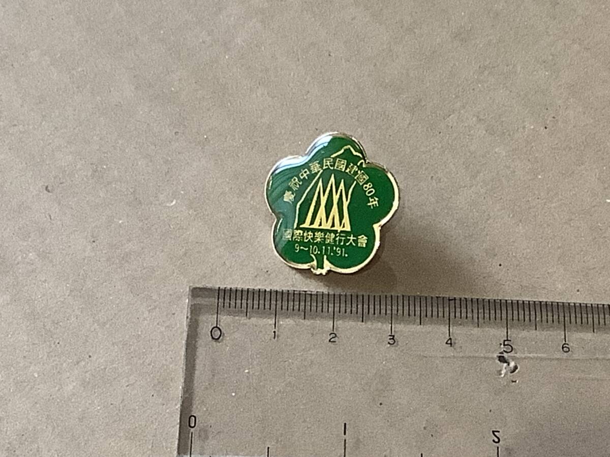 - 愛祝中華民国建国80年 国際快楽健行大会バッヂ 91.11.9~10 緑
