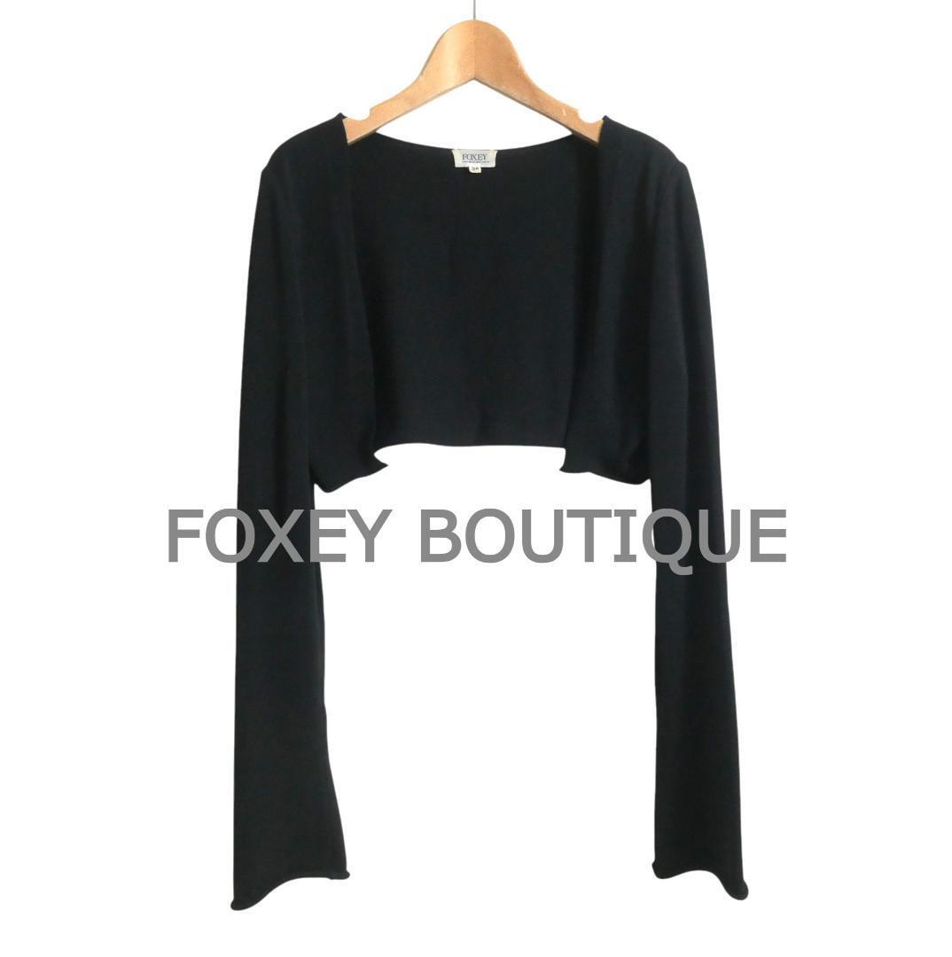 > 美品 FOXEY BOUTIQUE フォクシーブティック サイズ38 ショート丈 長袖 ニット カーディガン ボレロ 黒 ブラック