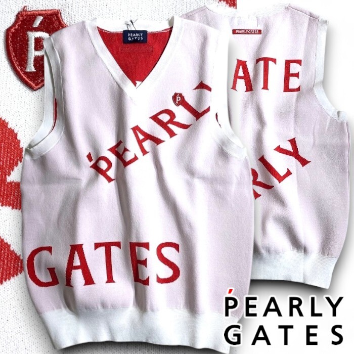 - PEARLY GATES パーリーゲイツ 定価2.5万 吸汗速乾 メゾンロゴ 総柄 Vネック ニットベスト ゴルフ レディース 2173308 030 0▲028▼50528w09