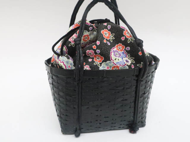 - 《古美術京松》【着物】和装小物 籠バッグ 花文 r7w06-1693
