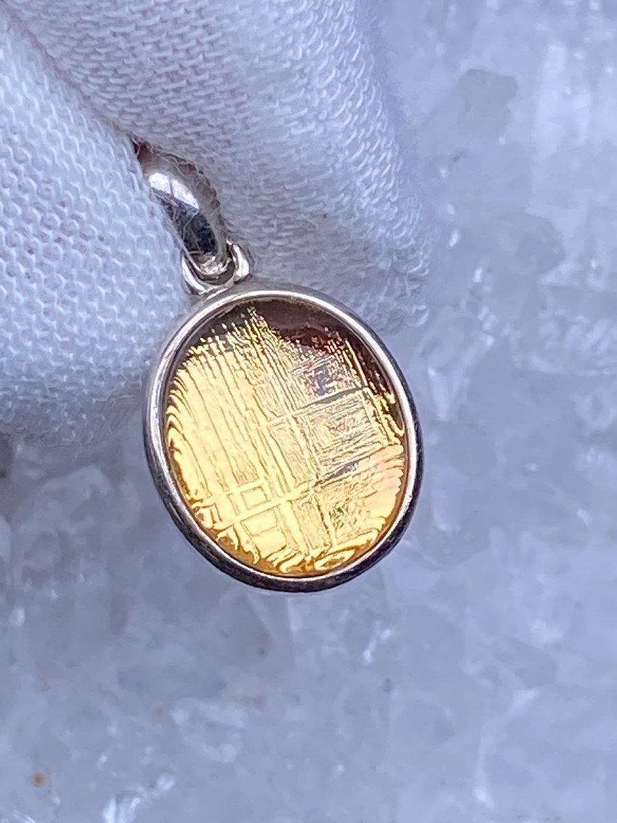 > 即決 0523e619 月に近い★【ゴールドギベオン隕石】★ ペンダント 13.7x11.8x4.5mm(新品)