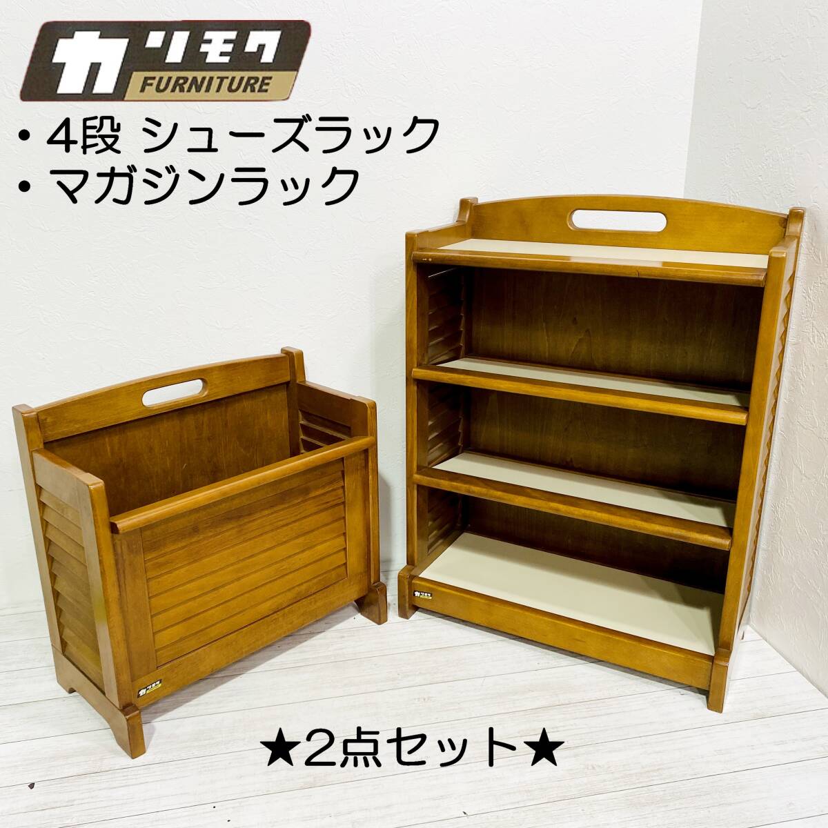 - E0ER0106★昭和レトロ★オールドカリモク/4段 シューズラック/収納/下駄箱/スリッパラック/時代/ビンテージ/アンティーク/昭和レトロ